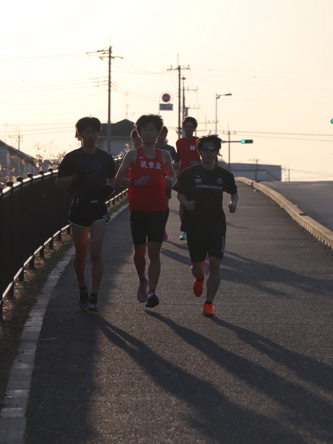 その順調な基礎強化期を踏まえて3月8日の立川シティハーフマラソンまでの5週間を専門強化期間とし、ハーフマラソンに向けた実践練習を中心とした取り組みを実施しました。中でもハーフマラソンが形になりつつあった中村、荻原、小山、相川の4名は小山洋生の61分03秒や川﨑の60分53秒の強化~調整をなぞって一段上のレース展開に臨む準備を行いました。その他のメンバーは大学のループ道路や科学万博公園での起伏を使った夏の選抜合宿を見据えた実践的トレーニングに取り組みました。