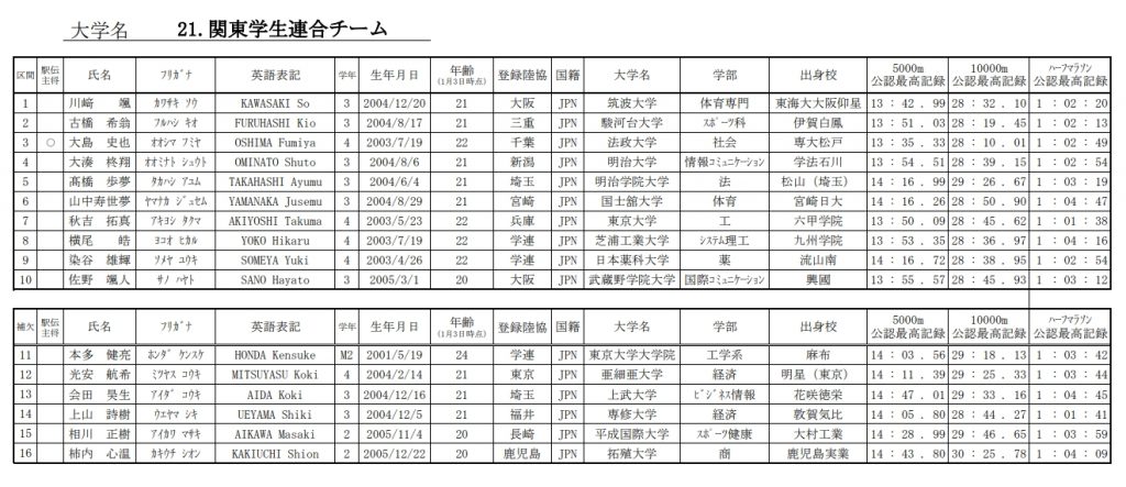 関東学連より発表があった通り川崎颯(体育3年)の学生連合チームの1区出走が決定致しました。