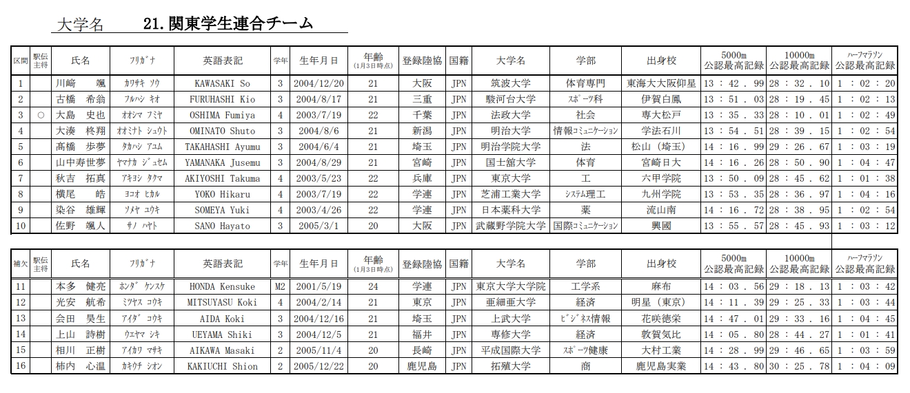 関東学連より発表があった通り川崎颯(体育3年)の学生連合チームの1区出走が決定致しました。