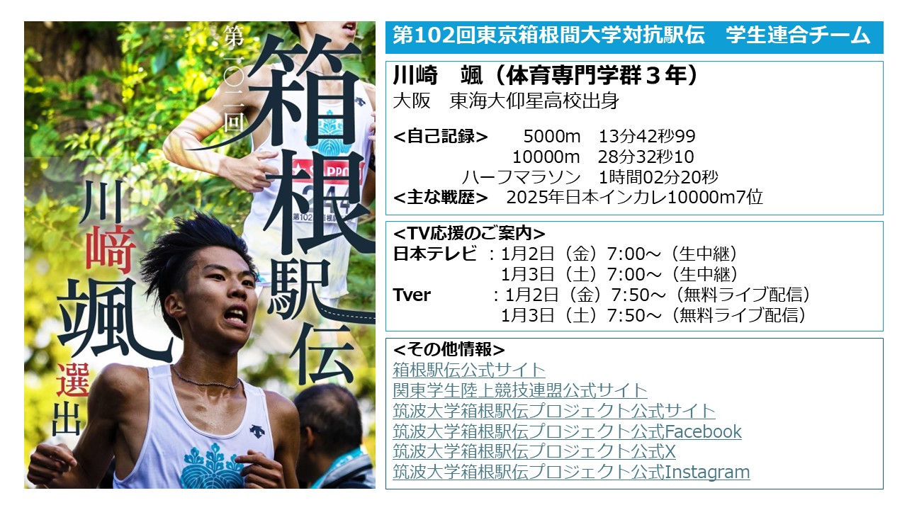 皆さま、筑波大学箱根駅伝プロジェクトでの学生の取り組みをあたたかく見守っていただき誠にありがとうございます。